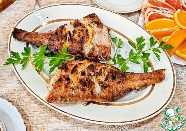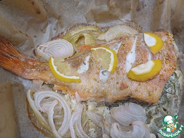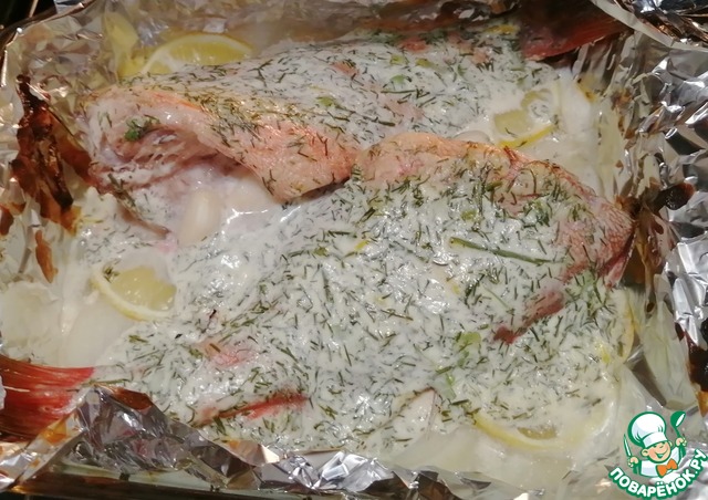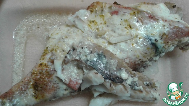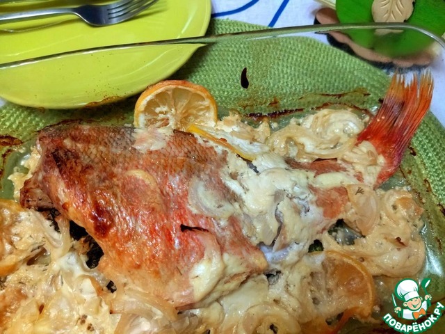 Рецепт «Морской окунь, запеченный в сметанном соусе»: