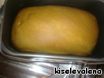 Продолжим... Отмерив нужное количество продуктов, выкладываем их в контейнер хлебопечки в следующем порядке: молоко комнатной температуры, размягченное сливочное масло, соль, сахар, мука и сухие дрожжи. -