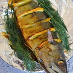 Запекала рыбу я без соли и масла, на фольге, при 180° в течение 45 минут. Всё-таки не верю я, что при 150° за 20 минут рыба будет полностью готова и безопасна для употребления.