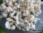 • Лук-порей мелко порезать, добавить цветную капусту. Перемешать.