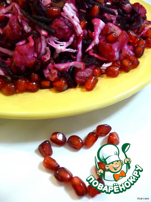 Замечательный салатик!!! Если в рецепте указана цветная капуста - мне уже наверняка придется по вкусу!!! А фотография с сердечком из граната очень-очень милая!!!!