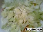 Заправляем яблочным соком, который делает салат необыкновенно сочным и пикантным, и растительным маслом.