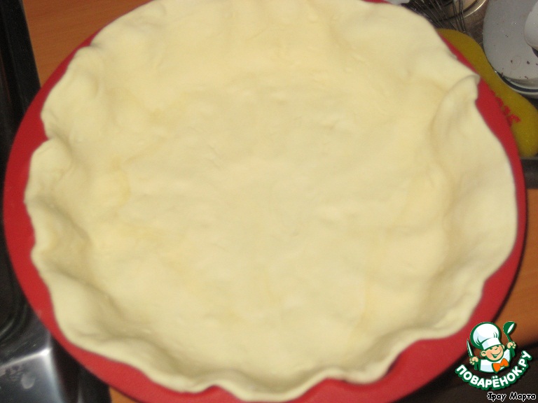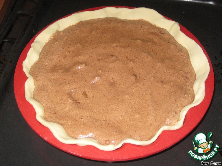 На тесто аккуратно вылить начинку из груш. Поставить в разогретую духовку и выпекать 60 минут при температуре 200 С.