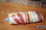 Затем беконом. Закреплять его не надо, все отлично держится на мясе.