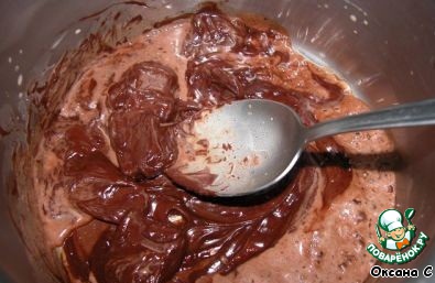 250 г. сметаны смешать со стаканом сахара, влить растопленный шоколад. 2 банана мелко нарезать и добавить туда же. Взбивать миксером 5 минут. -