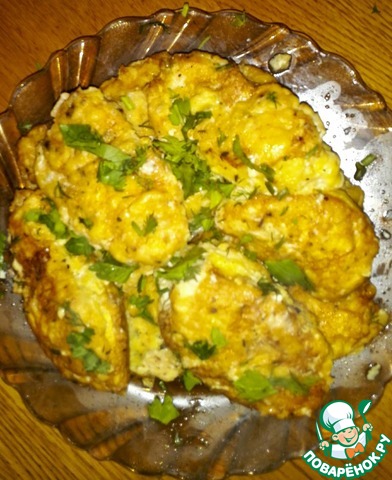 Обмакиваем во взбитые со специями яйца (у меня орегано, мята).