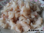 Рыбное филе нарезать поперек тонкими кусочками или крупной соломкой.
