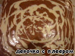 Покрыть тесто кремами двух видов, располагая их по спирали