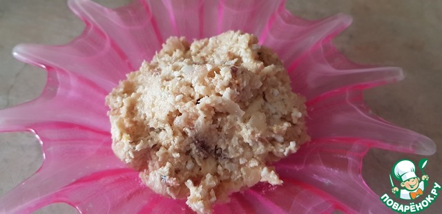 Перемолоть на мясорубке сельдь, отжатый хлеб, яблоки и лук. Добавить к этому всему размягченное сливочное масло. Я добавила зеленый лук поэтому цвет не совсем ожидаемый получился. Посолить, поперчить, добавить уксус и сахарок.
