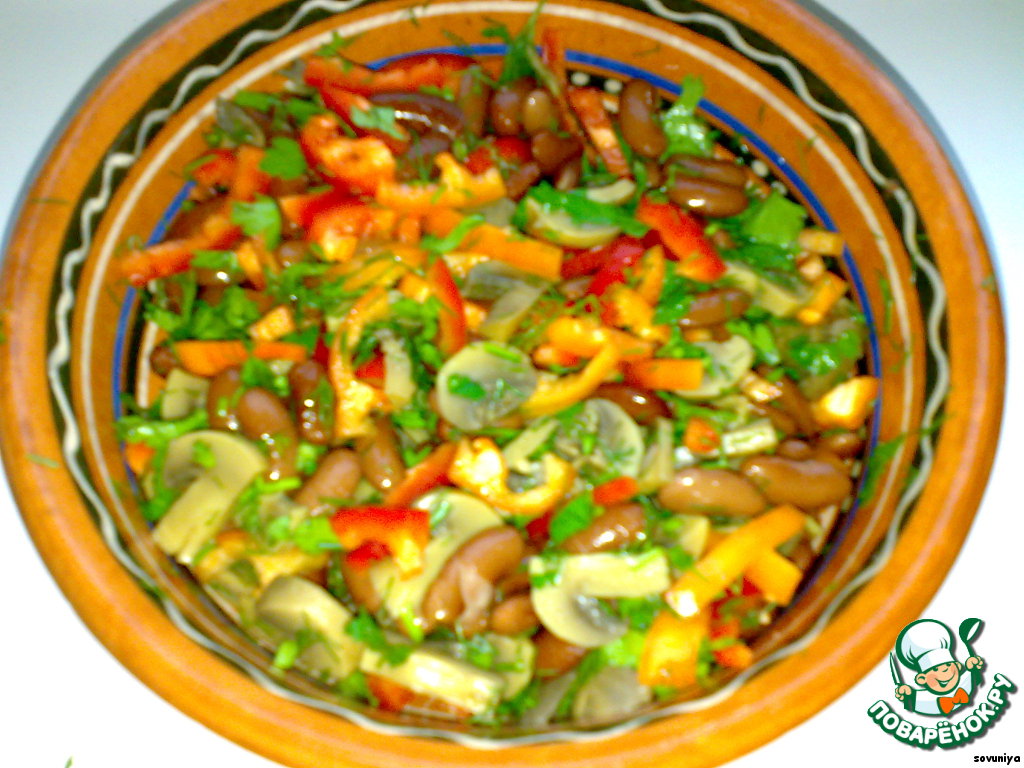 Симпатичный салат с любимой мною фасолью! Вас - с дебютом на сайте!