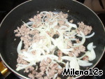Фарш прожарить с небольшим количеством растительного масла под крышкой (мой был говяжий, так что потребовалось 10 минут).