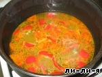 Налить 2,5-3 стакана кипятка. Посолить и поперчить по вкусу.