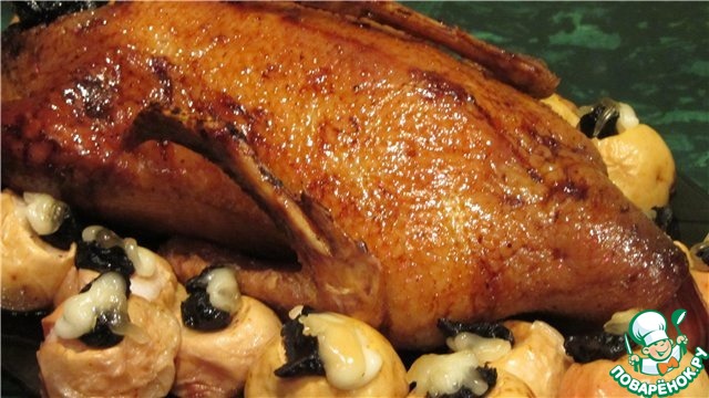 Рецепт «Медовая утка с яблоками, клюквой и черносливом»: