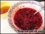 Смешайте клюкву с 2 ст.л. меда. И хорошо разотрите.