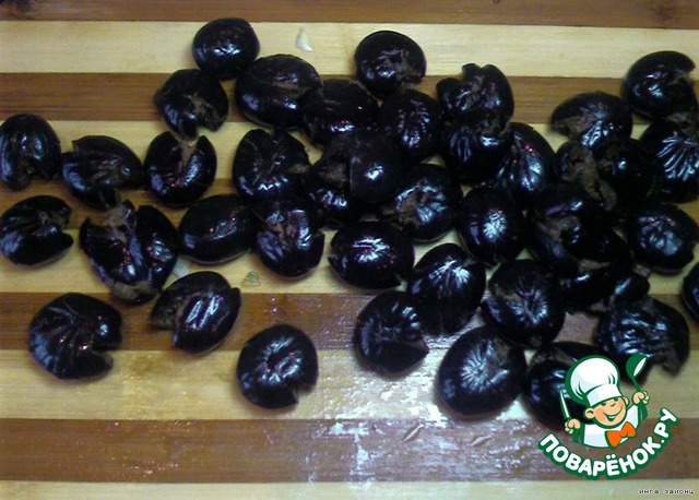Из маслин вытащить косточки (можно взять сразу без косточек, но я считаю что целые все таки вкуснее)