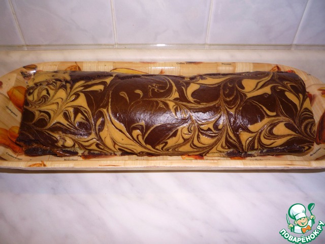 1/3 часть отделили, добавили какао и кофе, растворенный в воде. -