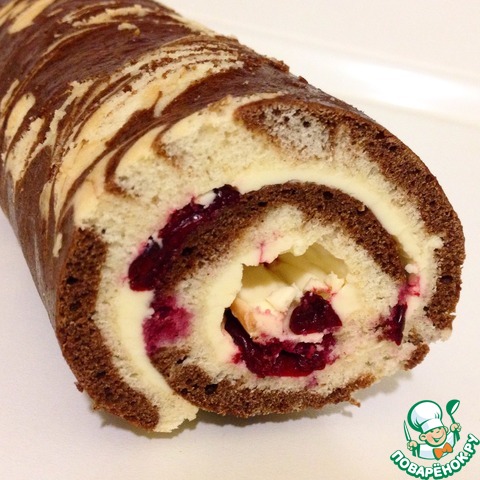 [+5]Сгущонки в наличии не оказалось, поэтому проварила замороженную вишню без косточки с сахаром, и закатала в рулет.