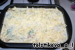Посыпаем тертым сыром и запекаем в духовке до золотистой корочки