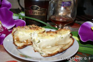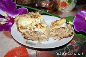 Блинчики с мясом "Круиз", запеченные в творожной заливке