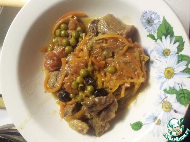 Описание: Очень интересный и оригинальный рецепт приготовления говядины. Чернослив придает сладковатую нотку, а морковь по-корейски и горчица – пряную. В итоге получается вкусное и ароматное блюдо. К тому же оно нежирное и, с моей точки зрения, полезное.