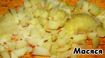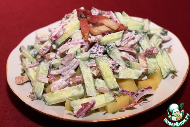 Картофель отариваем в мундире, остужаем, чистим и режем точно так же