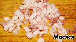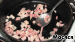 Бекон режем кубиком или тонкими полосками. Можно взять грудинку.