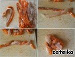 Дальше больше. Филе нарезаем полосками повдоль (брюшки придется срезать, во всяком случае, я с ними дальше работать не смогла, они отправились к головам, хвостикам и т.д. – потом они смогут реализовать себя в супе). Чем короче филе, тем тоньше полоски, ведь нам их плести. У меня получились где-то по полсантиметра.