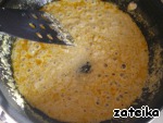 В горячее вино всыпаем шафран, перемешиваем, вливаем сливки и увариваем соус до загустения (минут 10-15).