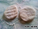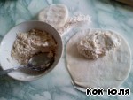 Раскатываем по очереди наши кружки. Выкладываем половину начинки, плотно закрепляем края.