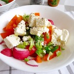 Вкусный и полезный салат для разгрузочных дней и не только. Данный рецепт был размещeн на сайте в 2008 году пользователем Adri под названием "Легкий салатик с брынзой" и иллюстрирован мной в рамках акции «Раскраски»