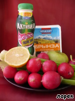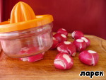 Раздавить редиску дном широкого стакана. Я приспособила для этой цели вот эту штуку. Небольшое замечание - если редиска большая, то ее лучше порезать на четвертинки