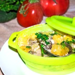 Зелень я взяла по нашему вкусу, петрушку пополам с кинзой. Красную луковицу решила не использовать, обошлась только белым луком. -