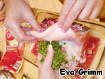 Люблю, когда готовят мужчины, а мои друзья с Украины очень любят делать это и с таким удовольствием, так вкусно - закачаешься! Раз в год мы собираемся и отдыхаем, ходим в баню, общаемся, в этот раз собрались у нашего друга Вадима, который, наконец, отстроил свои хоромы в 5 -ти км от Москвы. Прошу к нашему столу! Эту рыбку я готовила и на другой день к приходу моих гостей вечером, а если я что-то кушаю 2 дня подряд из праздничных блюд, то поверьте мне, они того стоят!