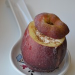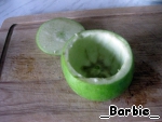 Отрезать у яблока нижнюю часть (будет служить крышечкой). Убрать чайной ложкой мякоть яблока, отступая от стенок примерно 1 см.