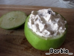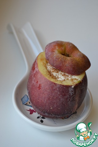 Выложить творожную массу в яблоко, слегка приминая. Накрыть "крышечкой" яблока.