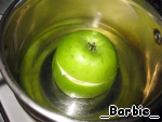 Налить в небольшую кастрюльку немного воды (примерно 3 см), поставить наше яблочко. Накрыть кастрюлю крышкой и поставить на средний огонь, примерно на 5-7 минут.