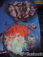 Закинуть в мультю на режим "выпечка" сначала лук с морковью, дать обжариться.
