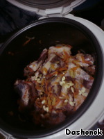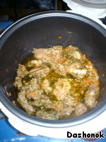Как обжарится (минут 20-25), добавить воду, специи, зелень, перевести МВ в режим "тушение" на пару часиков и можно отправляться гулять с чАдом, либо заняться десертом/гарниром/любимым делом. :)