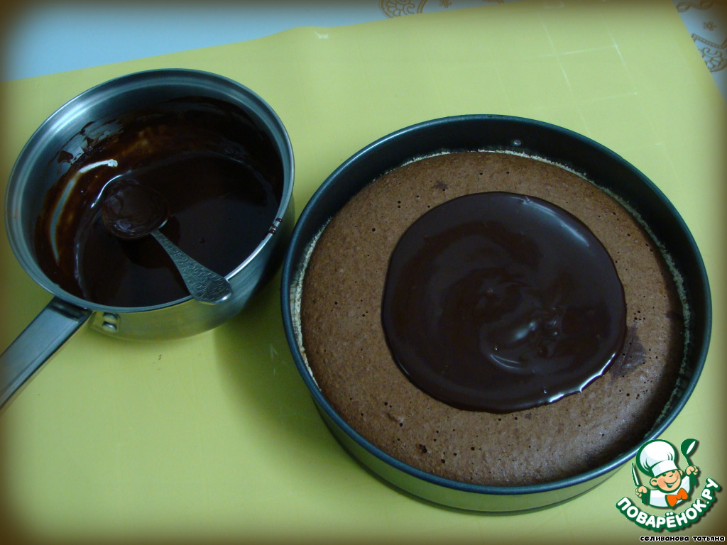 Через полчаса поливаем верх торта растопленным шоколадом