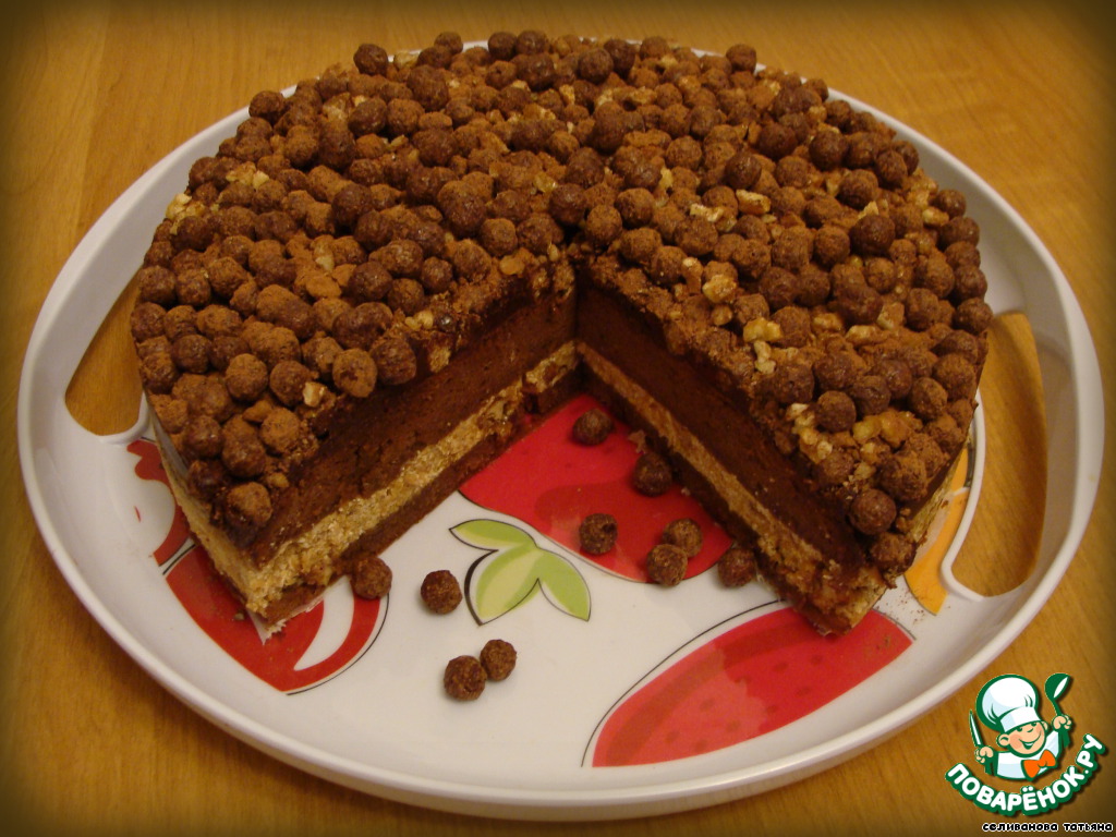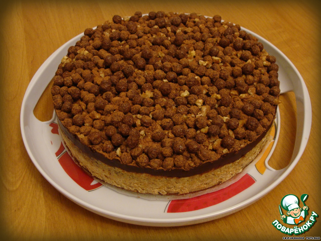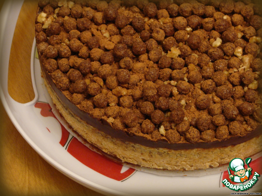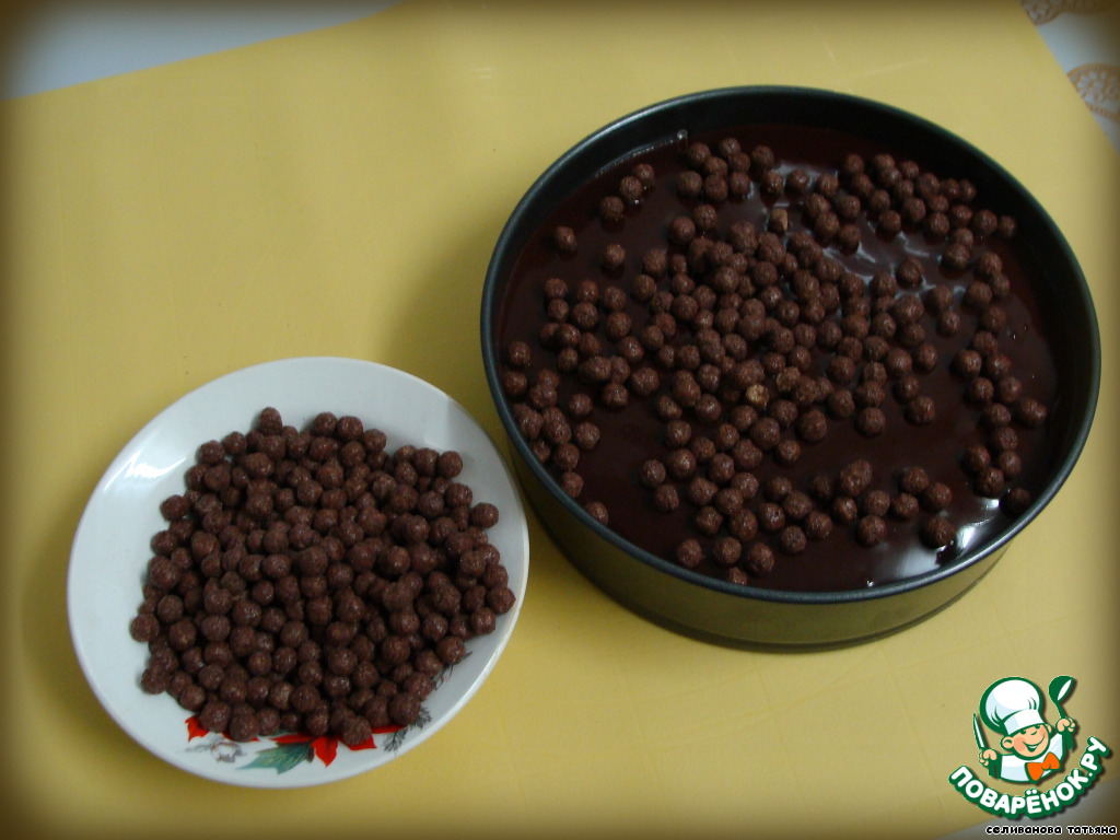 Обсыпаем кукурузными шоколадными шариками и присыпаем какао