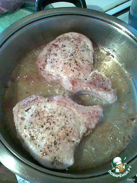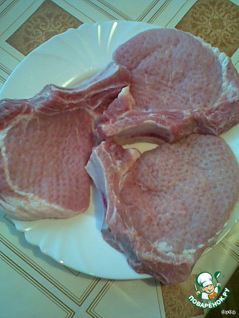Взять свиной карбонад на косточке (не менее 2 см толщиной), острым ножом сделать в нем глубокий надрез со стороны мякоти до самой косточки. Получится глубокий карман.