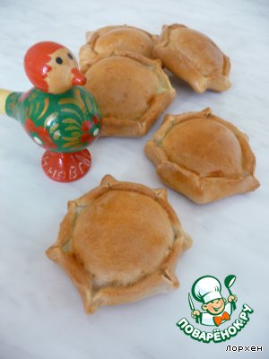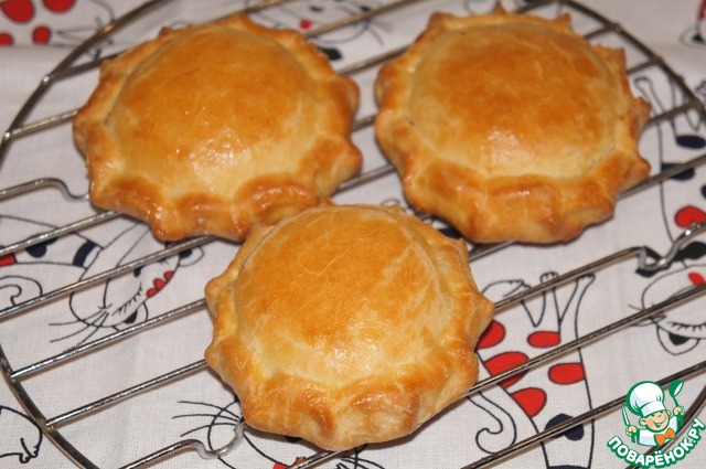 В середину каждого большого кружка положить начинку и накрыть меньшим кружком.