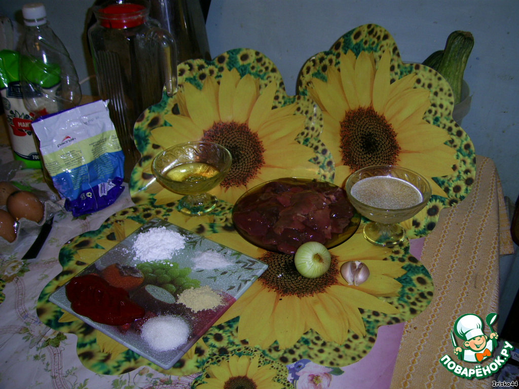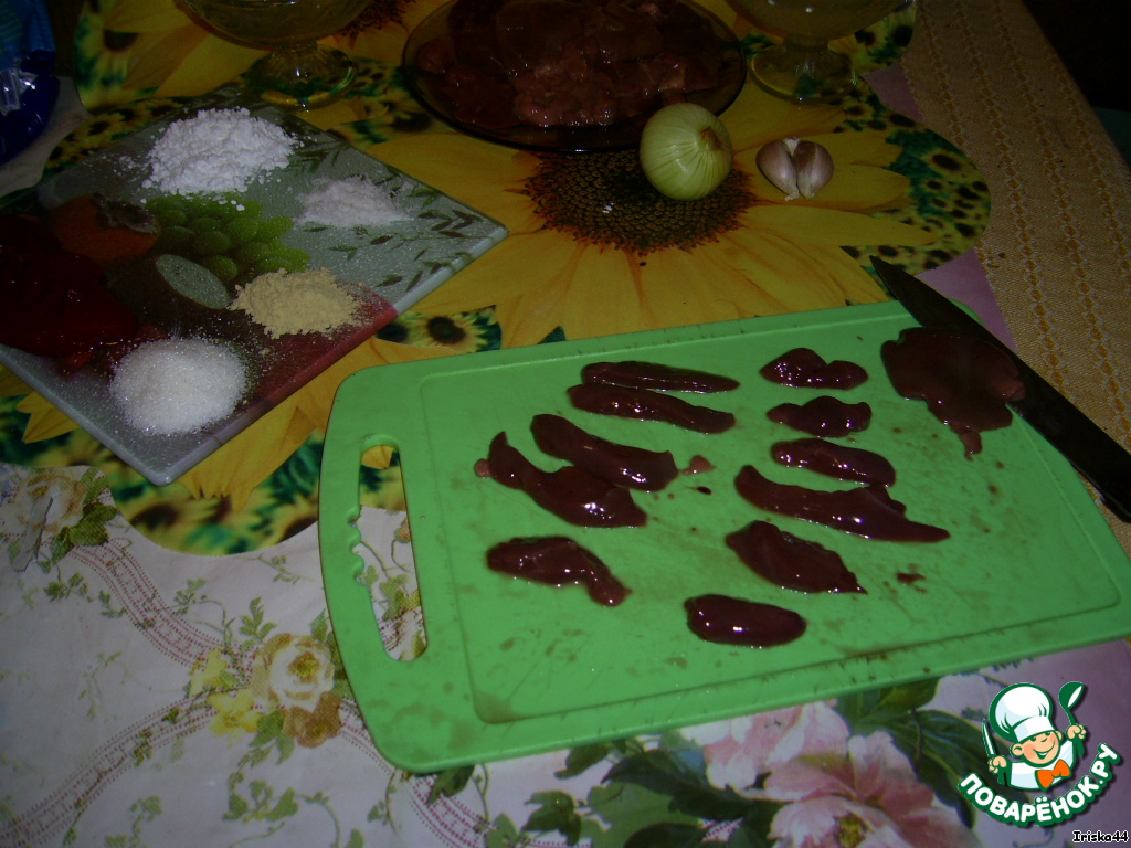 Очищаем печень от пленок, если они есть. Режем прямоугольными ломтиками.