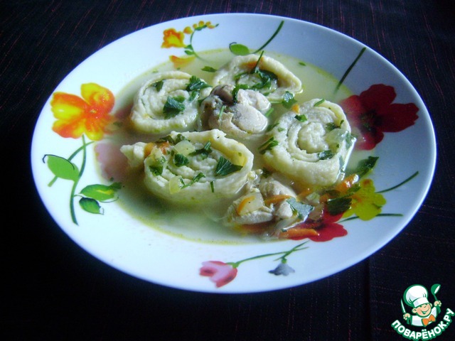 Рецепт «Суп куриный с рулетиками»: