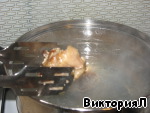 Когда мясо подрумянится, переложить его в кипящую воду, масло оставить на сковороде.