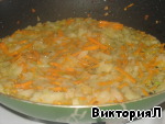 Лук и морковь мелко нарезать и обжарить на сковороде с оставшимся маслом,