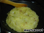 Картофельно-капустное пюре выложить на сковороду, смешать с кусочками сала, сформировать из массы лепешку и обжарить до золотистого цвета.