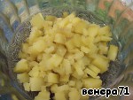 Картофель отварить, почистить, нарезать мелкими кубиками.