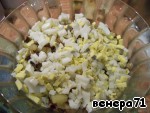 Яйца отварить, почистить, нарезать мелкими кубиками.