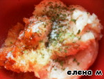 Выдавить зубчик чеснока, добавить сметану и приправу, перемешать, смазать этой смесью зразы.